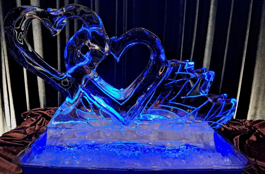 Als u op zoek bent naar slechts een scheutje ijs, is de meest traditionele optie het vrijstaande beeldhouwwerk, dat vaak is gesneden met symbolen van liefde (harten, ringen, zwanen, enz.) of de nieuwe achternaam of initialen van een stel. Volgens Robert The Iceman wordt dit soort stuk meestal gebruikt als visueel tegenwicht voor de bruidstaart. Een andere optie op kleinere schaal is om bloemen in ijs te hangen voor een unieke kijk op tafelmiddenstukken.