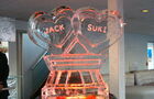 Elk ijssculptuur/snijwerk/rodel wordt met de hand en met een kettingzaag gemaakt volgens een speciaal ontwerp. Het kunstwerk wordt samen met de klant uitgewerkt voor die speciale fotoshoot, wat mensen aan het lachen maakt!