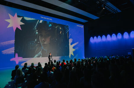 - Audiovisuele opstelling met een projectie van 370 m² van muur tot vloer.