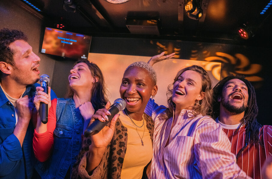 Afhankelijk van de grootte van uw team kunt u een of meerdere privéruimtes (van 3 tot 30 personen) boeken om levendige sessies te beleven, afgewisseld met zangoptredens en muzikale uitdagingen. Het is de bedoeling dat de ervaring meeslepend, leuk en verbindend is.