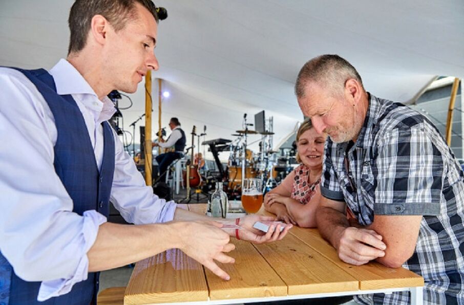 Ik heb Bart laten komen op onze opendeurdagen, waar hij de mensen 1:1 entertainede. Zijn interactie met alle soorten mensen is bewonderenswaardig en zijn 'truckendoos' is groot genoeg, zodat mensen keer op keer verwonderd waren met nogmaals een nieuw goocheltruc.