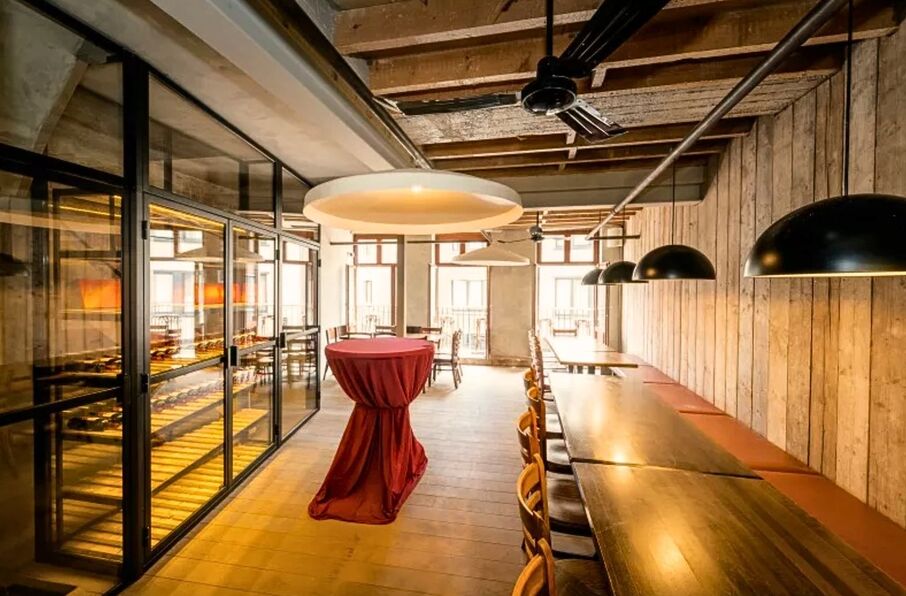 Zeer gezellig zaaltje met mogelijkheid tot workshop tapas, cocktails, wijn, cava of paella.