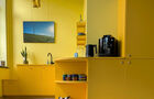 De ruimte verwelkomt je met een gezellig salon en aangrenzend een zonnige keuken met écht goeie koffie.