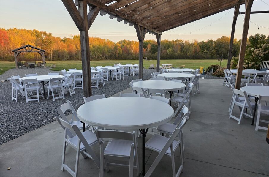 Event Rent ME levert tafels, stoelen, tenten, cocktailtafels en dansvloeren voor bruiloften en evenementen in heel Centraal Maine. Wij verzorgen alles, van bruiloften in de achtertuin of schuur tot grote buitenrecepties en besloten feesten.