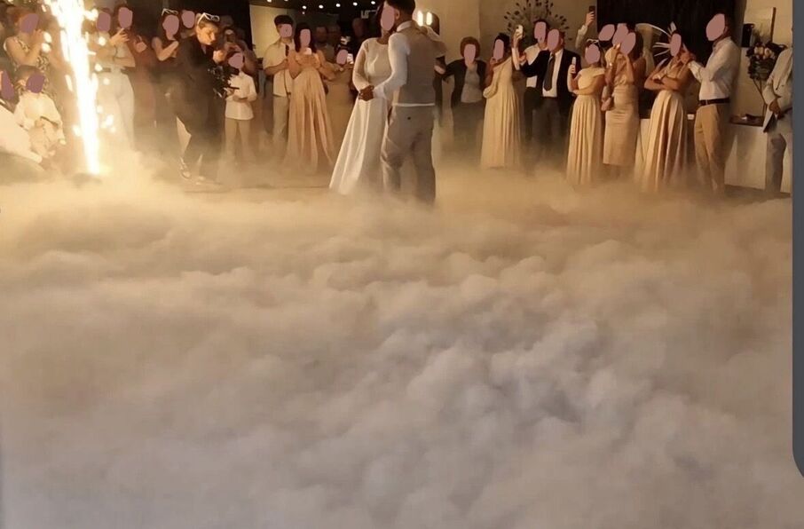• Veiligheid en hygiëne: Ons systeem maakt geen gebruik van droogijs (waardoor het risico op brandwonden wordt vermeden) en de rook maakt de vloer niet nat, is geurloos en laat geen vlekken achter op de jurk van de bruid.