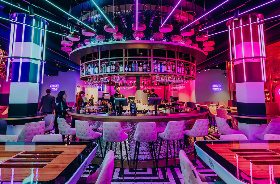 The All Out Amsterdam is dé nieuwe hotspot voor (corporate) events in Amsterdam. Dit revolutionaire do-F&B concept is de perfecte plek om samen te komen, activiteiten te spelen, en ondertussen te genieten van de lekkerste cocktails, bites of walking dinners. Van karaoke kamers tot social darts, sjoelen, shuffleboard en een LED discovloer ballenbak. Er is voor ieder wat wils! Met een levendig en gewaagd design nodigt de venue je uit om jezelf onder te dompelen in een wereld vol kleur, creativiteit en plezier.